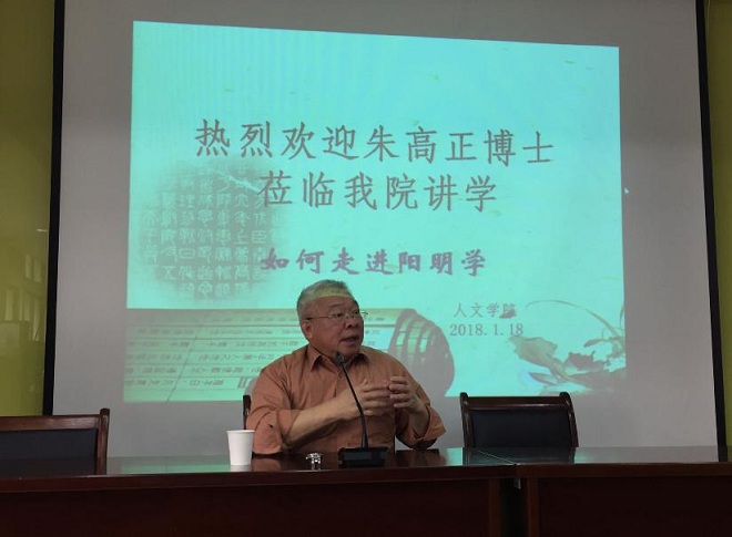 1月18日上午9时,来自台湾地区的著名学者、南宋大儒朱熹的第26代嫡孙朱高正博士应邀在田家炳楼209会议室为PlayAce师生献上了一场“如何走进阳明学”的文化盛宴。朱高正先生从自身求学经历入手,强调学习与生活体验、亲身体悟相结合。首先,分析王学(王阳明)与朱学(朱熹)之间的承续关系,指出阳明学是在朱子学土壤中发展起来的。其次,分析王阳明的经典哲学著作《传习录》的思想形成过程,详细分析和阐释了“知行合一”、“...