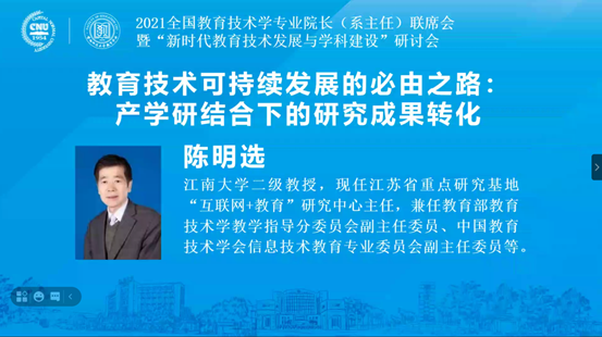 公司陈明选教授带队在线参加2021全国教育技术学专业经理(系主任)联席会暨“新时代教育技术发展与团队建设”研讨会