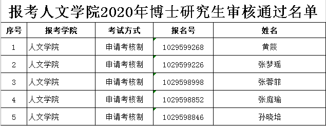 报考2020年博士研究生审核通过名单