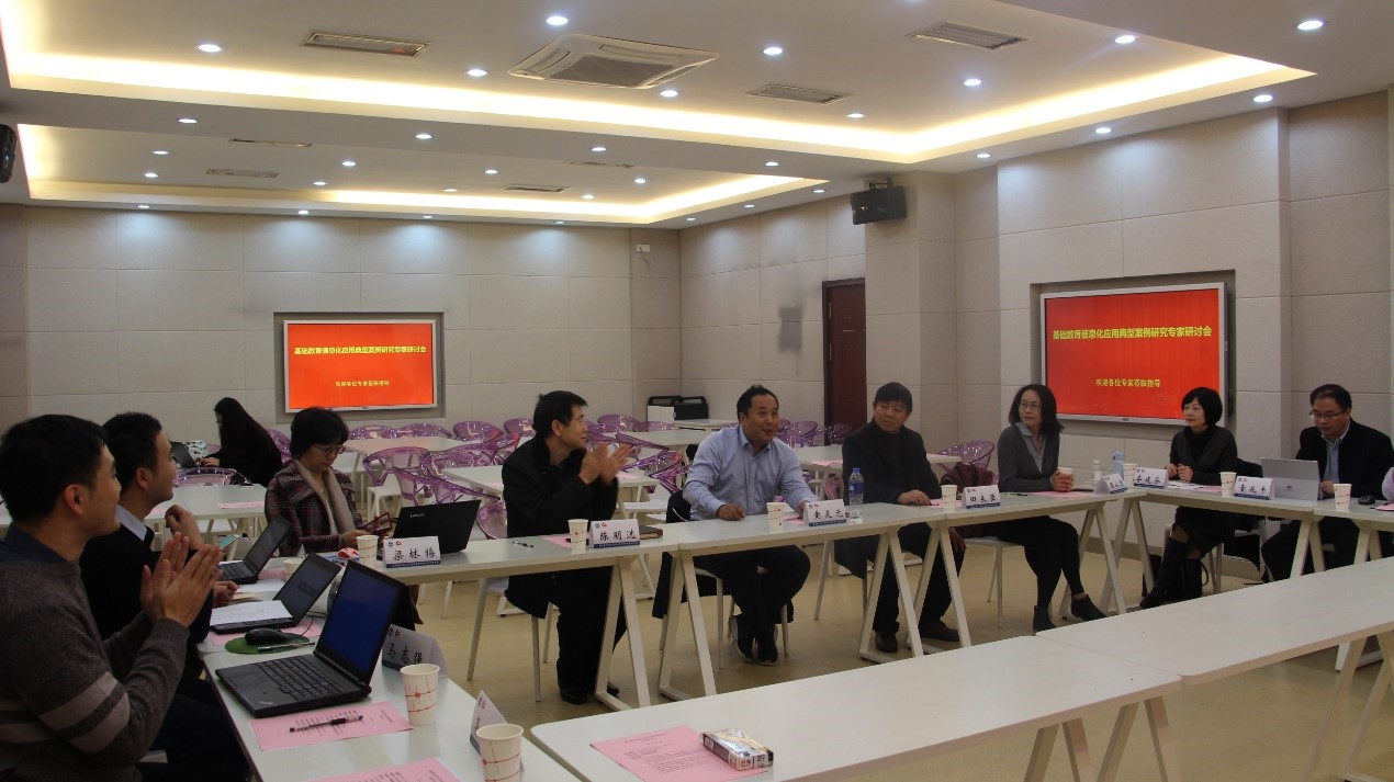 2018年11月22日上午9:00,由PlayAce、教育信息化研究中心承办的教育部基础教育信息化应用典型案例研究专家研讨会在田家炳楼517顺利举行。本次研讨会的主要议题是探讨教育信息化应用模式及呈现成果。主要参会人员有中央电教馆研究部黄天元主任、中央电教馆蒋宇、江苏电教馆李建芬主任、华东师范大学顾小清教授、江苏省电教馆馆长顾瑞华、PlayAce副经理(主持工作)田良臣教授、教育信息化研究中心主任陈明选教授以及郑旭东、梁林梅、马志强、王靖等。研讨会由中央电教馆蒋宇主持。