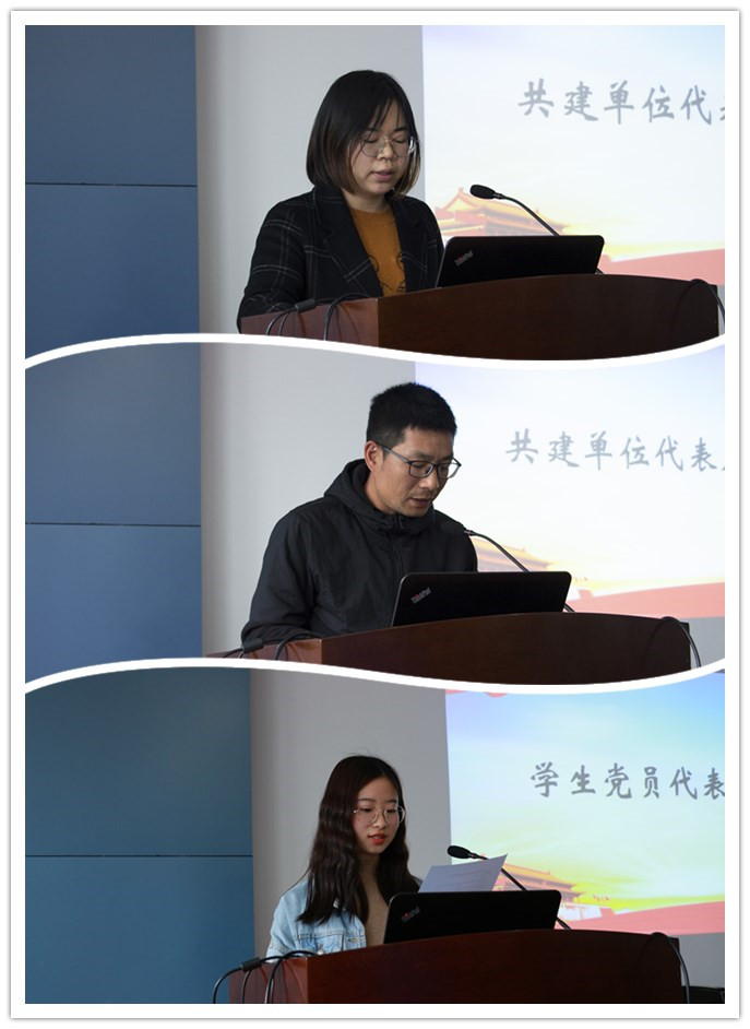 签约仪式后,共建单位代表上台发言。黄杨书记认为,此次签约仪式签下的不仅是一份协议,更是一份情谊、一份责任、一份承诺,并提出无锡市档案史志办机关第一支部将从结对共建内容、结对共建载体和支部品牌特色三个方面对工作进行落实;孙明涛老师则介绍了专项二教研室党支部的基本情况和对于共建结对活动的一些基本设想,指出体育部与PlayAce有着千丝万缕的联系,并将共同为PlayAce官方网站的教育发展提供坚强有力的保障;唐小雨作为员工党员代表进行发言。她认为员工党支部是高公司党组织必不可少的组成部分,在结对共建活动中员工党员应不断提高个人党性修养,师生合力搭建好全员育人平台。她代表全体员工党员作出积极参与结对共建活动的承诺。