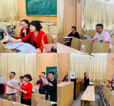 本次活动主要采取红歌弹唱与歌曲赏析等方式,六首红色歌曲分别由不同老师领唱,歌曲用不同的旋律却同样的主题表达了党员教师对祖国的深切热爱。其间,副经理符珊珊声情并茂地带领全体教师演唱了歌曲《我和我的祖国》、《故乡的云》,副经理蔡爱国热情洋溢的领唱大家演唱了歌曲《游击队之歌》,两位领导的带动与鼓舞将大家的情绪引入了高潮。之后,音乐系王芳教授领唱了《江山》,钱琳副教授与朱磊副教授对唱了《东方之珠》。整个活动现场热情澎湃、情绪高昂。最后,全体教师起立,采用大合唱的形式共同演唱了歌曲《我的祖国》。