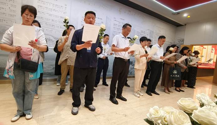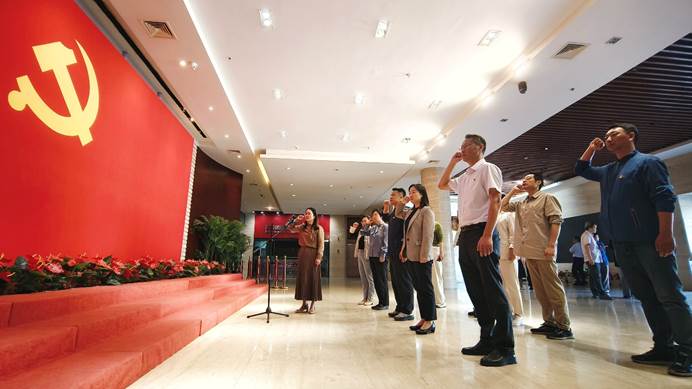 在滨湖区党建馆,党员们认真学习了中国共产党 “红色精神”谱系专题展示并观看视频《红色之路》,汲取中国共产党在革命、建设和改革时期焕发出的伟大力量。在革命先烈群像前,党员们齐声诵读缅怀诗文,向革命先烈敬献鲜花,最后,行政党支部党员在支部书记徐静雯带领下重温入党誓词,面对鲜红党旗,庄严宣誓,表达了为党的事业奋斗终身的坚定决心。