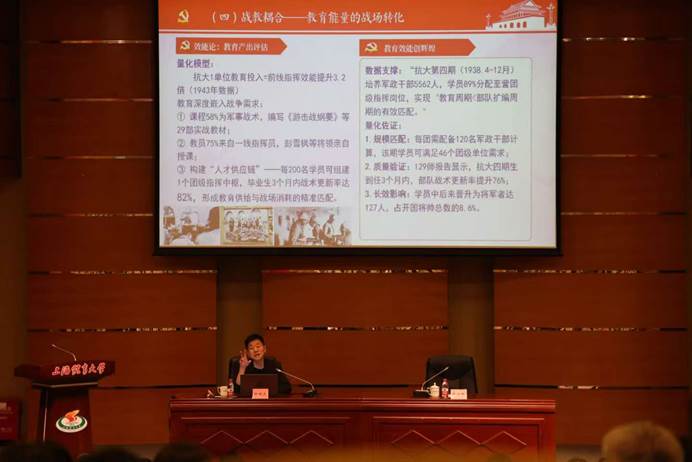 陈明选教授的“跨界”报告在选题、内容解读和表达方式上均打破传统思政报告模式。不局限于对历史事件的简单罗列和概念化表述,而是从精神与智慧的高度,直击历史核心问题:“中国共产党为何能以弱胜强、从小到大,实现精神力量的超级转化?又为何能在抗日战争中成为中流砥柱?” 通过深入剖析,陈明选向学员们清晰展示了中国共产党领导抗战胜利的深刻密码。