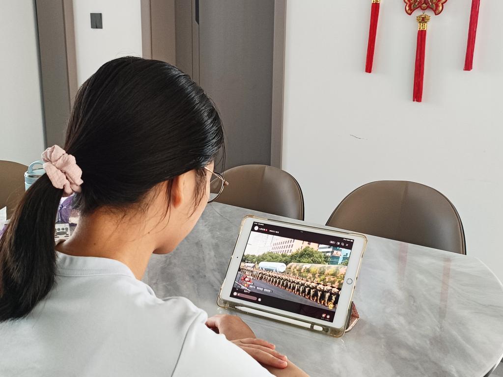 直播过程中,从气势恢宏的徒步方队迈着铿锵步伐通过天安门,到铁甲生辉的装备方队展现大国重器实力,再到战机列阵的空中梯队划破长空,每一个震撼场景都牵动着师生的心。大家全神贯注紧盯屏幕,不时以热烈掌声表达内心的激动与自豪,部分师生还认真记录阅兵亮点,深刻感受我国国防建设的卓越成就与民族精神的磅礴力量。