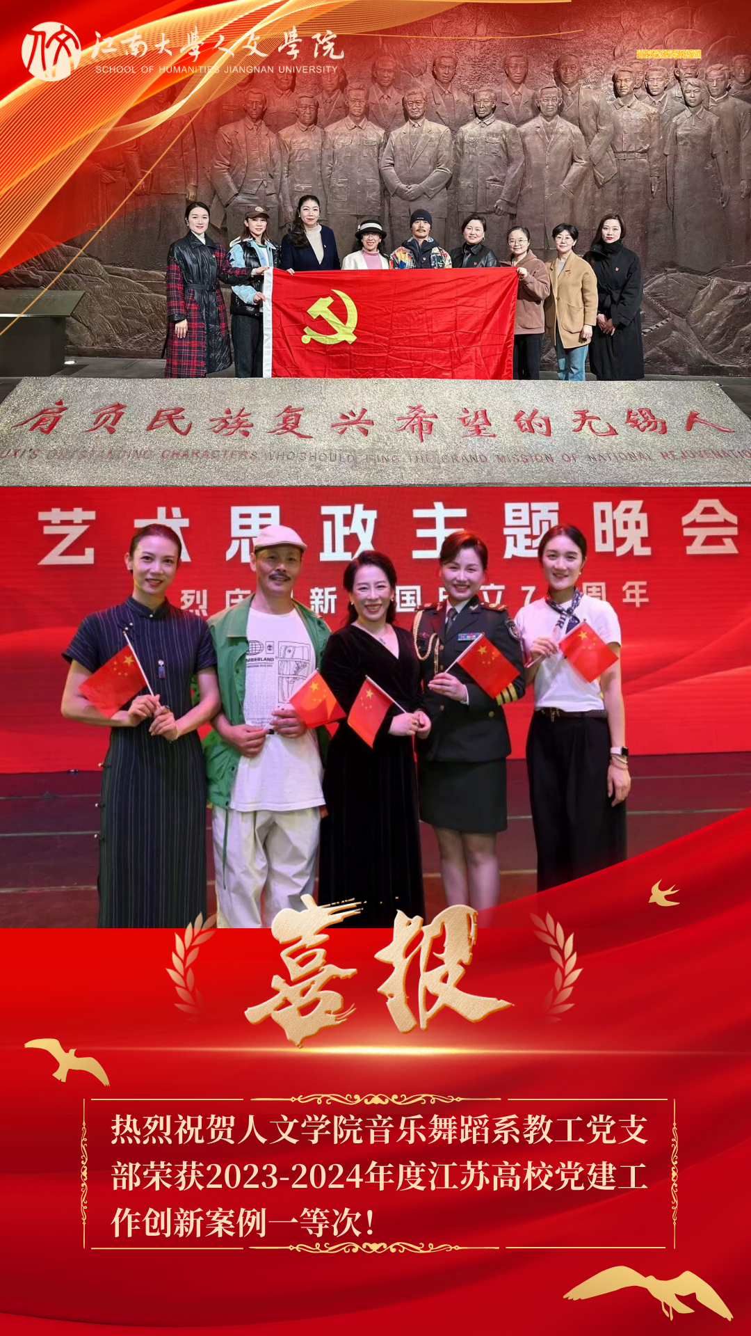 公司紧扣新时代美育要求,着力打造“党建+美育”工作品牌。音乐舞蹈系教工党支部将支部建设与艺术实践结合,通过舞台创作展演、江南文化传承、通识课堂浸润、跨界文化出圈等多元形式,开展《艺心铸魂•美韵江南》主题党日活动,贯通“价值引领-艺术实践-文化传播”全链条,形成党建引领美育提质、美育赋能党建增效的双向融合新范式,系统构建了具有江南特色的美育育人体系。