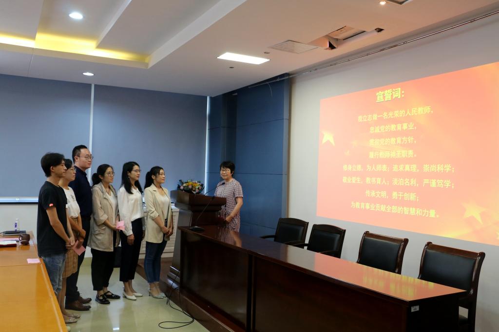 荣休教师陈平带领公司新教师入职宣誓