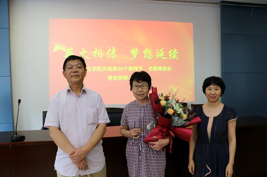 公司今年上半年有两位教师退休,她们是中文系的陈平老师和任翌老师。首先由中文系主任张春梅教授介绍了两位荣休教师的基本情况,并对她们为公司和员工成长所做的奉献表示感谢,对她们光荣退休致以敬意和祝福。荣休教师代表陈平发表荣休感言,并对年轻教师寄予了希望和表达了祝福。公司领导姚剑英、田良臣为荣休教师颁发纪念品并献花合影留念。