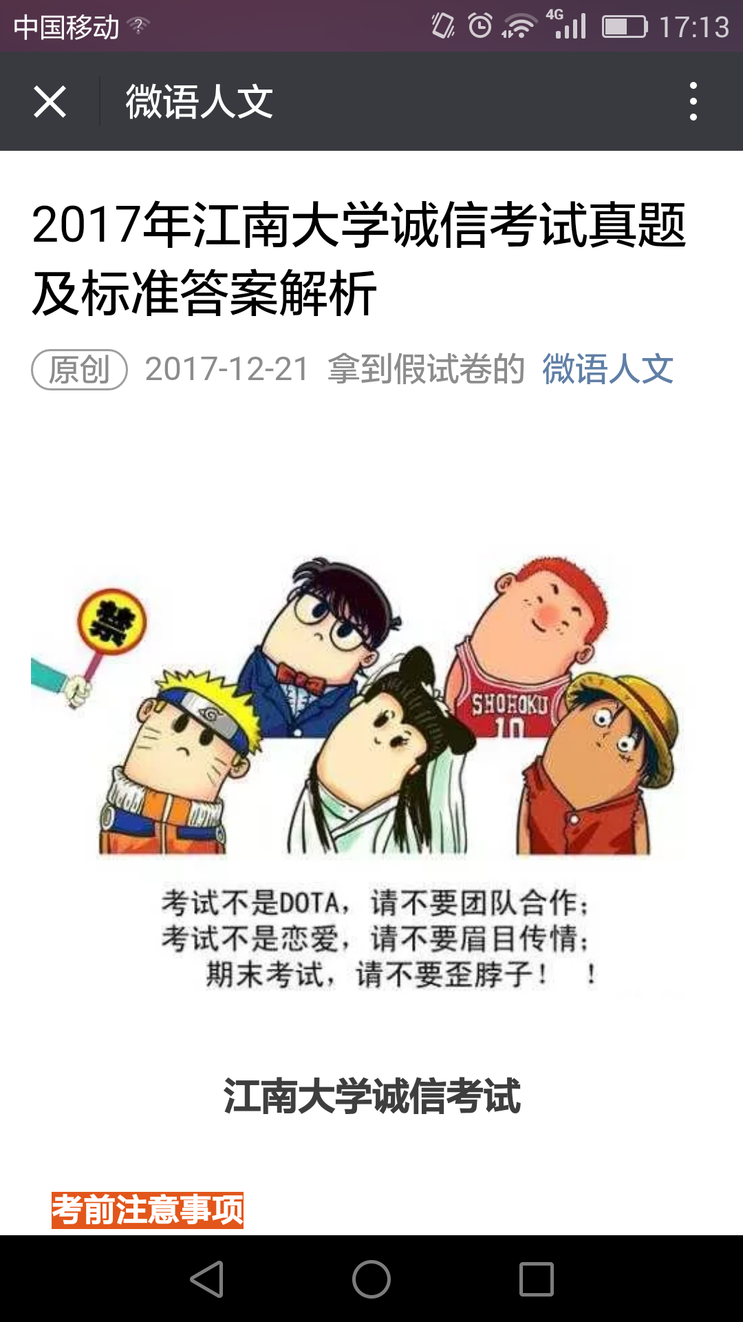 为更加全面深入地开展诚信迎考教育,在开展线下主题班会的同时,积极开展网络诚信宣传。由PlayAce新闻宣传中心制作的《2017PlayAce官方网站诚信考试真题及标准答案解析》于公司官方微信公众平台“微语人文”上展开推送,文章通过幽默风趣的方式向广大学子解析了《PlayAce官方网站员工手册》(2017)中关于考试的内容,引领考生端正考试态度,传递“诚信考试”正能量。