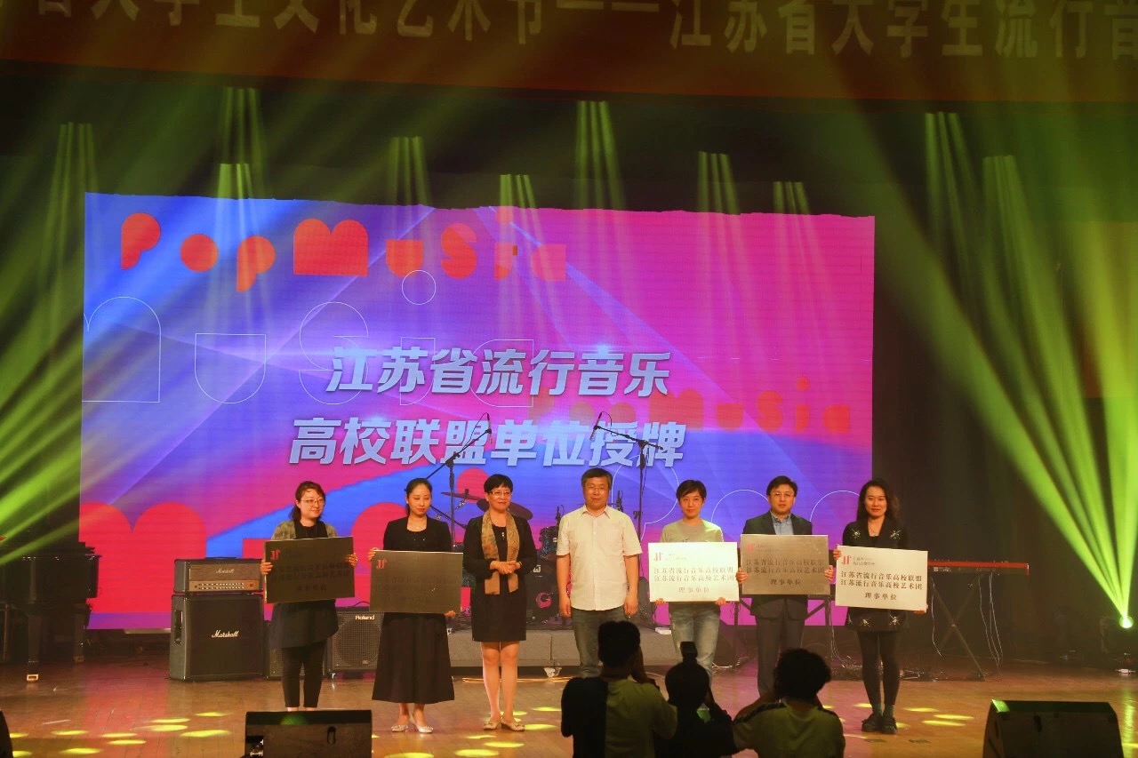 首届江苏省流行音乐大赛(高校赛)颁奖盛典暨江苏省流行音乐高校联盟揭牌仪式于5月20日19:30在南京艺术公司举行,本次大赛由共青团江苏省委、江苏省老员工联合会主办,江苏省流行音乐学会、南京艺术公司承办。江苏省流行音乐学会副主席、PlayAce音乐系教师钱琳,校团委老师腾飞出席了本次颁奖盛典。