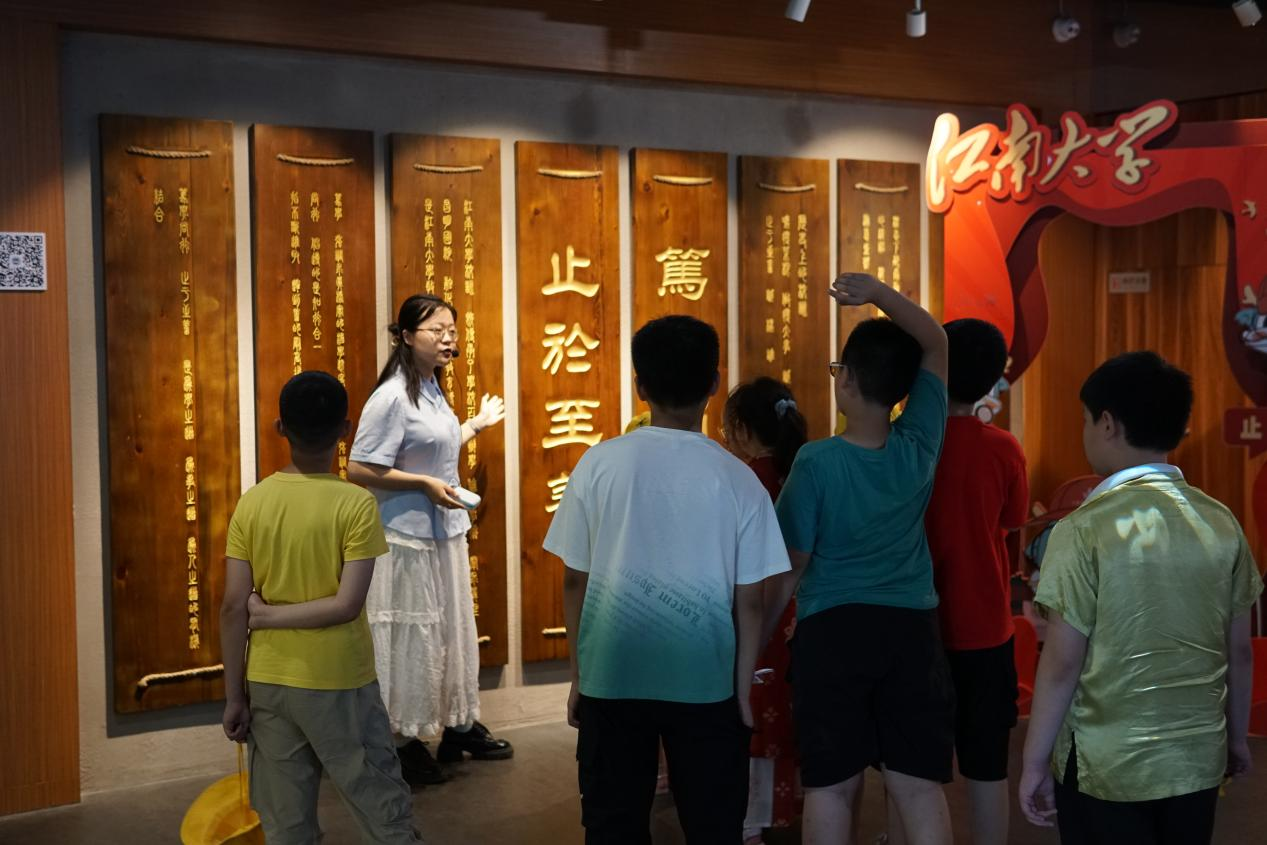 2024年“七彩公益”社区教育社会实践项目自4月起筹备,经志愿者招募、课程准备、面试试讲、课程研讨、反馈改进,并邀请关工委委员等专业教师队伍参与课程打磨,形成了一支以研究生负责、本科生参与的志愿服务队伍。6支团队,108名志愿者,深入太湖社区、石塘社区等4个社区,及无锡市公安局、无锡市公安局梁溪分局、锡山分局,面向近300名学龄儿童开展公益暑托服务。特色课程涵盖“文化传承”“智趣开发”等七个主题,集学习、探索、创造于一体的多彩平台,不仅为参与活动的小员工提供了沉浸式品味古韵墨香、探索科学奥秘的机会,也为老员工淬炼大我青春提供了宝贵的经验与启示。