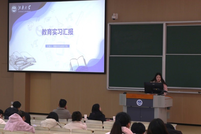 本次汇报依次由江苏省天一中学、江苏省锡山高级中学、无锡市第一中学、无锡市江南中学、无锡市东林中学、江苏省锡山高级中学实验公司、无锡市太湖格致中学、江苏省无锡师范附属小学、无锡市连元街小学、无锡市东林小学、江苏省无锡崇宁路实验小学等11个教育硕士实践基地实习生代表发言。同学们的汇报图文并茂,分享了本次实习任务完成情况、具体收获、问题困惑,并结合实习经历给予2024级教育专硕关于见习实习的建议和反思。