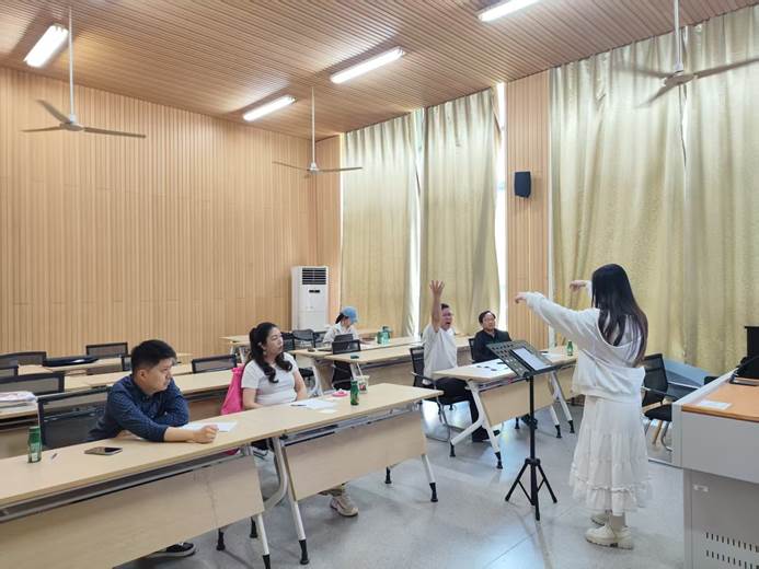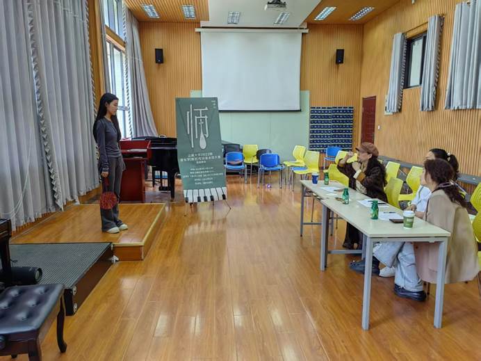 大赛前夕,2022级所有员工以饱满的热情投入备赛中,琴房、舞蹈教室、多媒体教室等处处涌动着精益求精的学术氛围,展现新时代师范生“厚积薄发、追求卓越”的精神风貌。比赛中,同学们以“三尺讲台育桃李,一方舞台展风华”的昂扬姿态,展现了一场艺术性、教育性与创新性于一体的高水准赛事。在合唱指挥组比赛中,同学们对声部平衡的精准把控,生动展现出作品的艺术魅力和情感内涵;在自弹自唱组比赛中,同学们将即兴伴奏与声乐表现有机融合,展现出扎实的专业功底;在微课组比赛中,同学们灵活运用多媒体技术,紧扣教学重难点,将文本知识转化为生动直观的课堂呈现,体现出“短、精、趣”的微课特色;另外在分选组中,同学们根据自身特长选择不同组别来展示专业技能,比赛精彩纷呈。