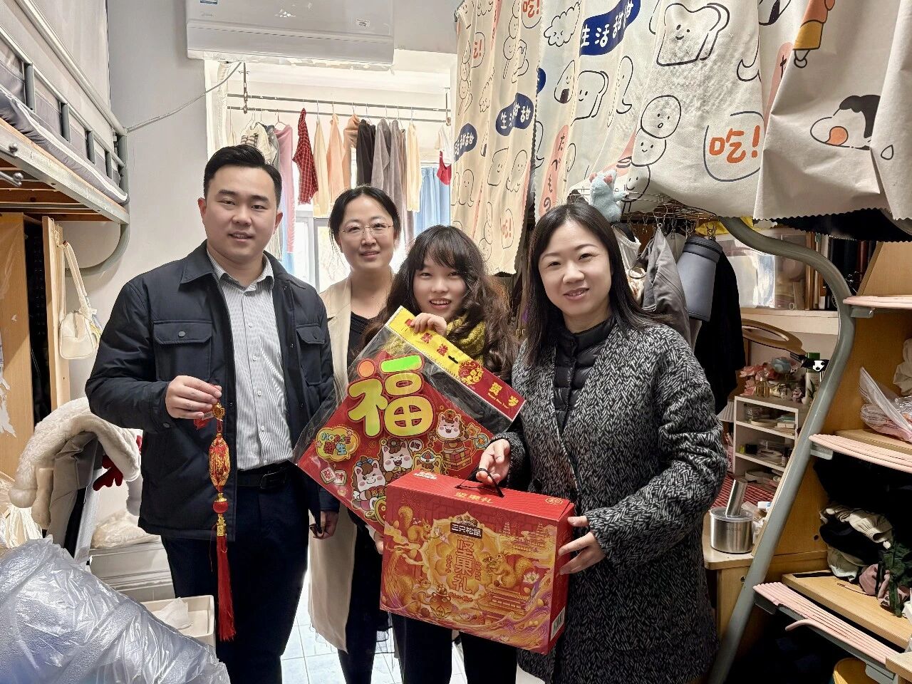 新春将至,年味渐浓。在春节来临之际,公司党委书记王晖、辅导员张雅静、邵祥岚、王振彬一行深入员工宿舍,开展新春走访慰问活动,为留校学子送上诚挚的节日祝福与暖心关怀。