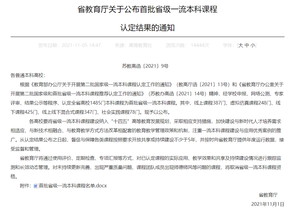 日前,江苏省教育厅组织了首批省级一流本科课程推荐认定工作,公司王靖、马志强、陈明选、刘向永、钱逸舟老师建设的课程《教育技术研究方法》顺利入选。