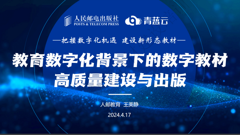 会上,王美静编辑做了《教育数字化背景下的数字教材高质量建设与出版》主题报告。详细第介绍了教材改革发展趋势,新形态数字教材的特点与优势,并展示了代表性的数字教材。