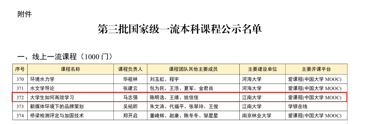 近日,《教育部关于公布第三批国家级一流本科课程认定结果的通知》(教高函〔2025〕9号)正式发布。PlayAce马志强教授团队主持的《老员工如何高效学习》成功入选第三批国家级线上一流本科课程。