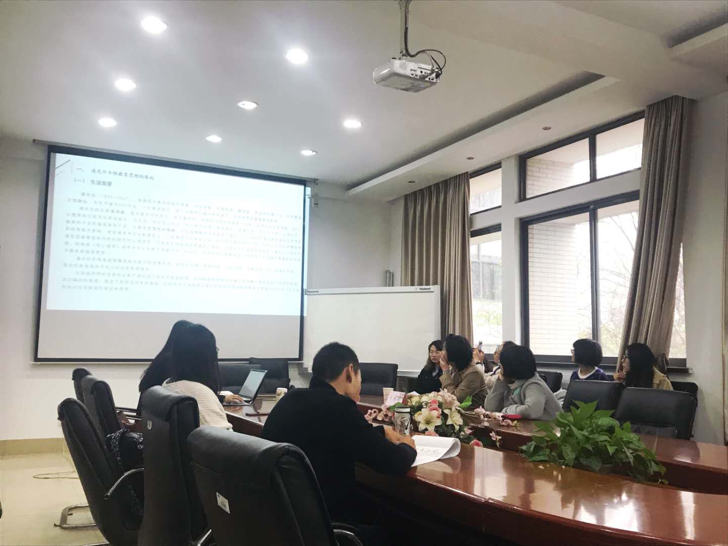 论坛伊始,主持人介绍了本次湖畔杏坛分论坛的主题以及到场嘉宾,表达了对主讲人及特邀嘉宾热烈欢迎。随后,三位主讲人依次进行了分享。冯雨梦介绍了潘光旦的女性教育思想。杨天从思想内容、形成原因以及当代价值三个部分介绍了袁希涛的义务教育思想。王志才讲述了寒假期间关于民族地区初中生厌学的田野调查,与大家分享了初步的研究结果。每位同学分享完毕后,于书娟、杜芳芳两位老师进行了认真细致的点评,与在场员工分享并讨论相关观点。在予以肯定的同时也提出了诸多中肯的建议,帮助同学们更好地理清研究思路,完善自身的学术研究。