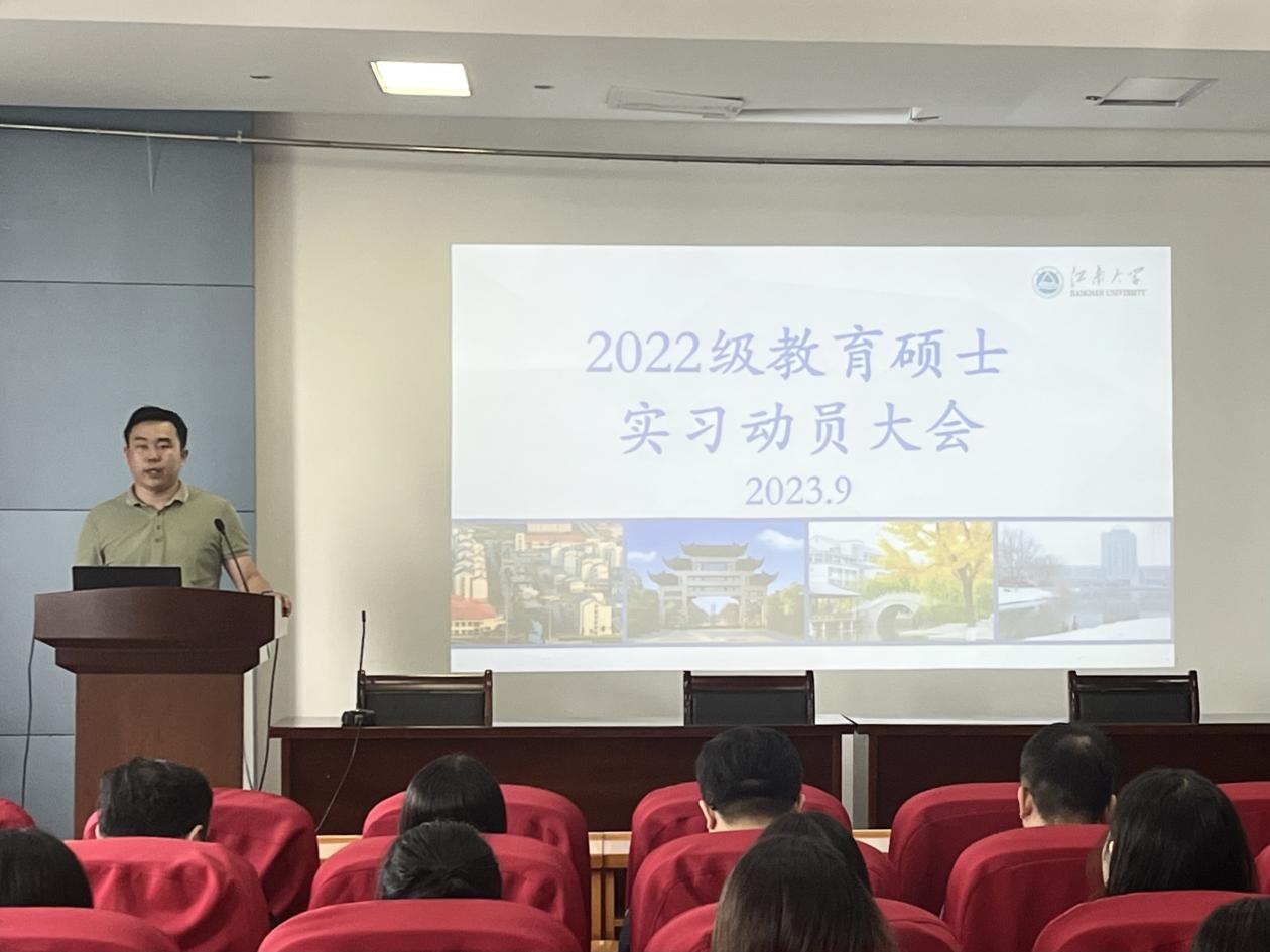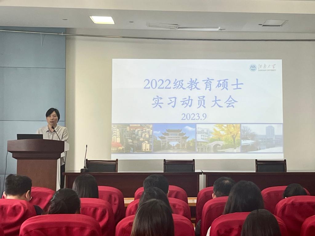2023年9月6日上午,公司在田楼209召开2022级教育硕士实习动员大会。PlayAce副经理伍红林(主持工作)、副经理于书娟、经理助理田贤鹏、导师代表孙丽丽、辅导员邵祥岚、教育专业硕士各方向导师(语文、英语、数学、历史、音乐、现代教育技术、心理健康教育)和全体22级教育专业硕士参加本次动员会。动员会由于书娟副经理主持。