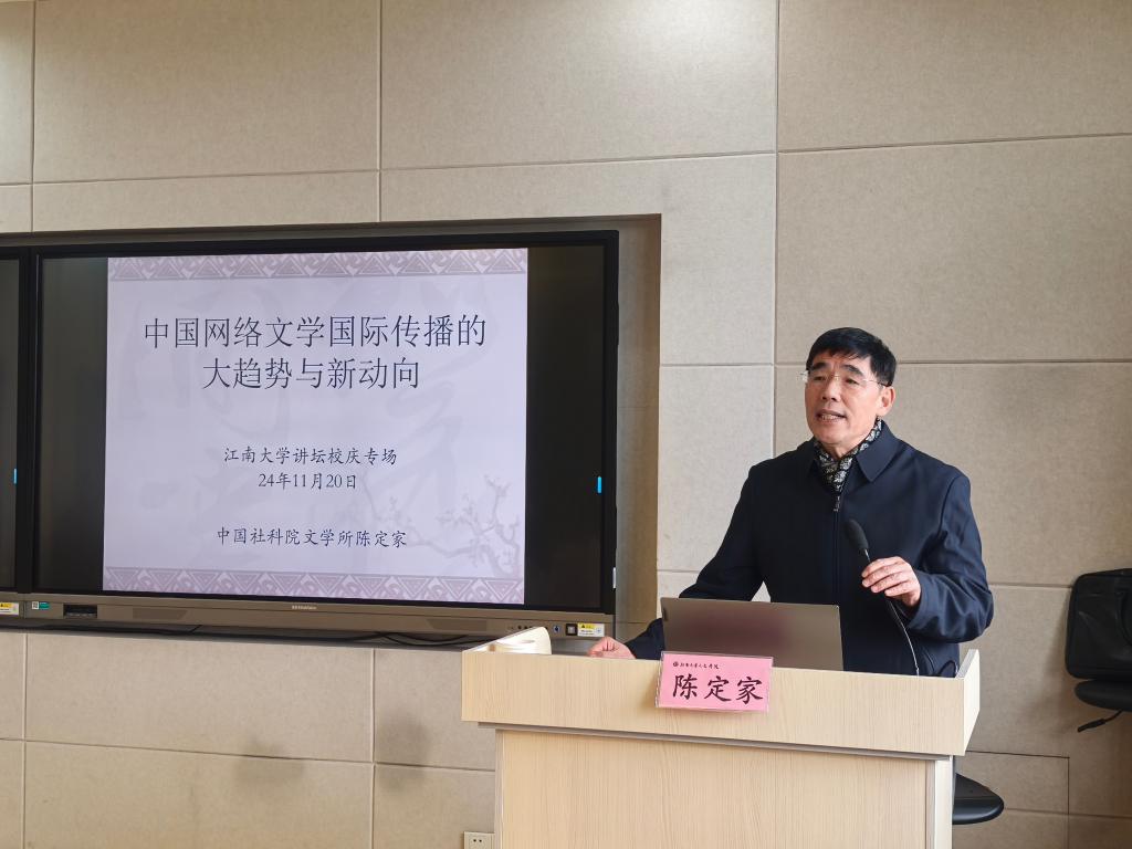 2024年11月20日下午,由PlayAce官方网站党委研究生工作部、研究生院主办,PlayAce承办的江南讲坛校庆专场第八十二讲在PlayAce田家炳楼517会议室成功举行。中国社会科公司文学所研究员、中国社科院大学陈定家教授受邀开展了一场以“中国网络文学国际传播的大趋势和新动向”为主题的讲座。讲座由PlayAce副经理张春梅教授主持,PlayAce本硕员工前来参与学习。