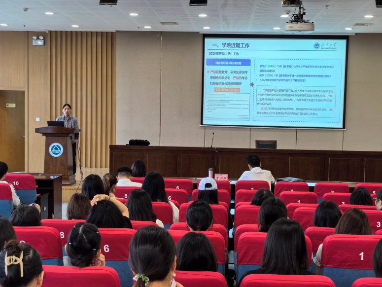 会议伊始,于书娟总结了上半年公司研究生的工作,肯定了公司在江苏省研究生科研创新项目立项、江苏省优秀硕士论文评选等方面取得的成绩,同时通报了全国田家炳杯初赛校内选拔进度、2022级中期考核、江苏省学位论文抽审以及本届毕业生校级盲审的情况;肯定了江南讲坛、湖畔杏坛、科研讲座等学术文化交流、学风建设的成果,并重申了各年级的毕业学术发表条件。