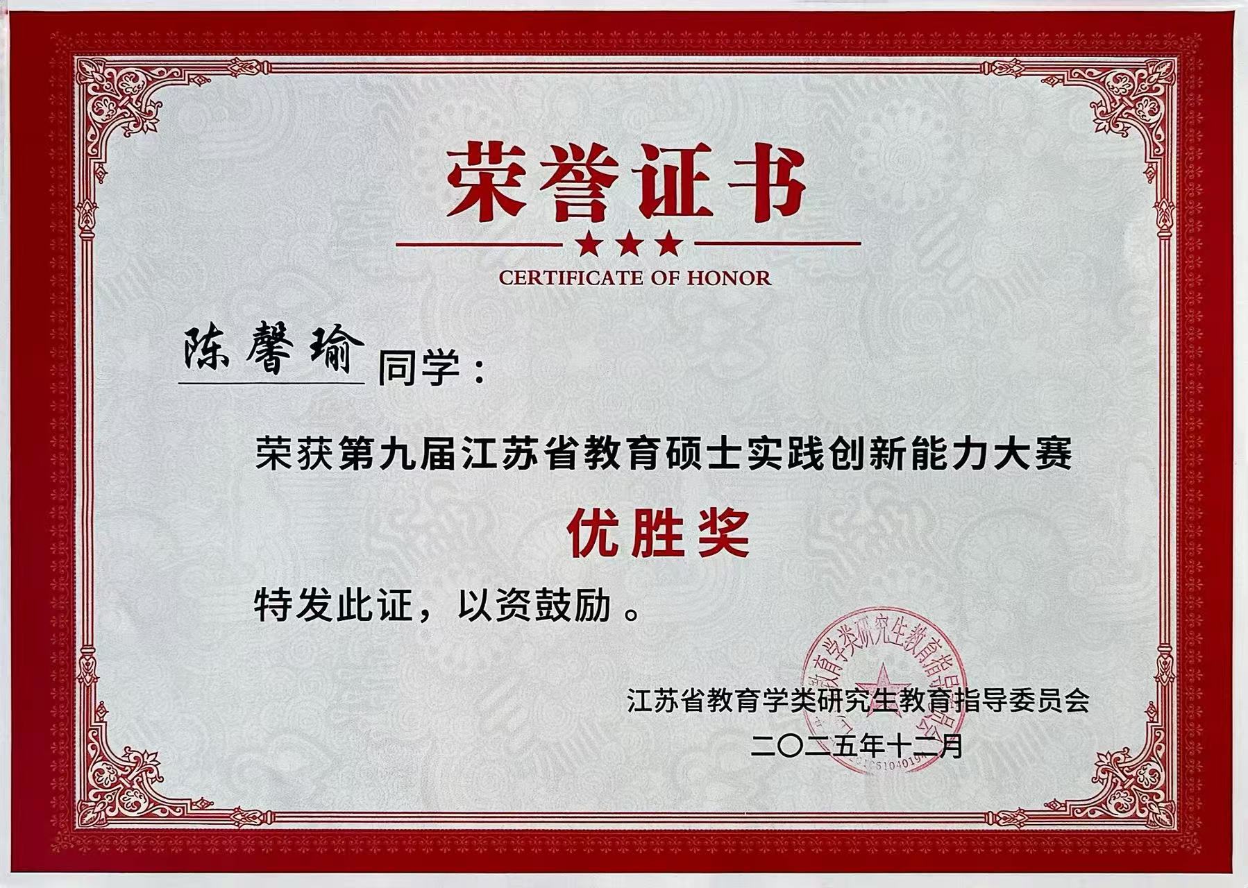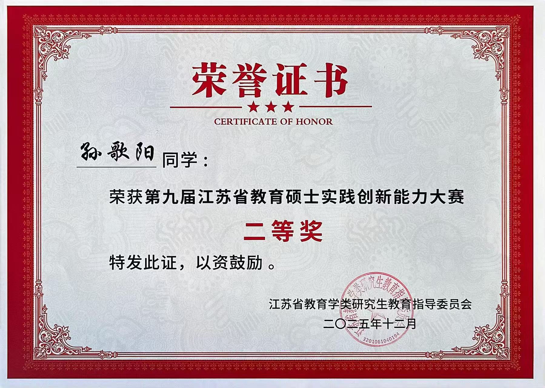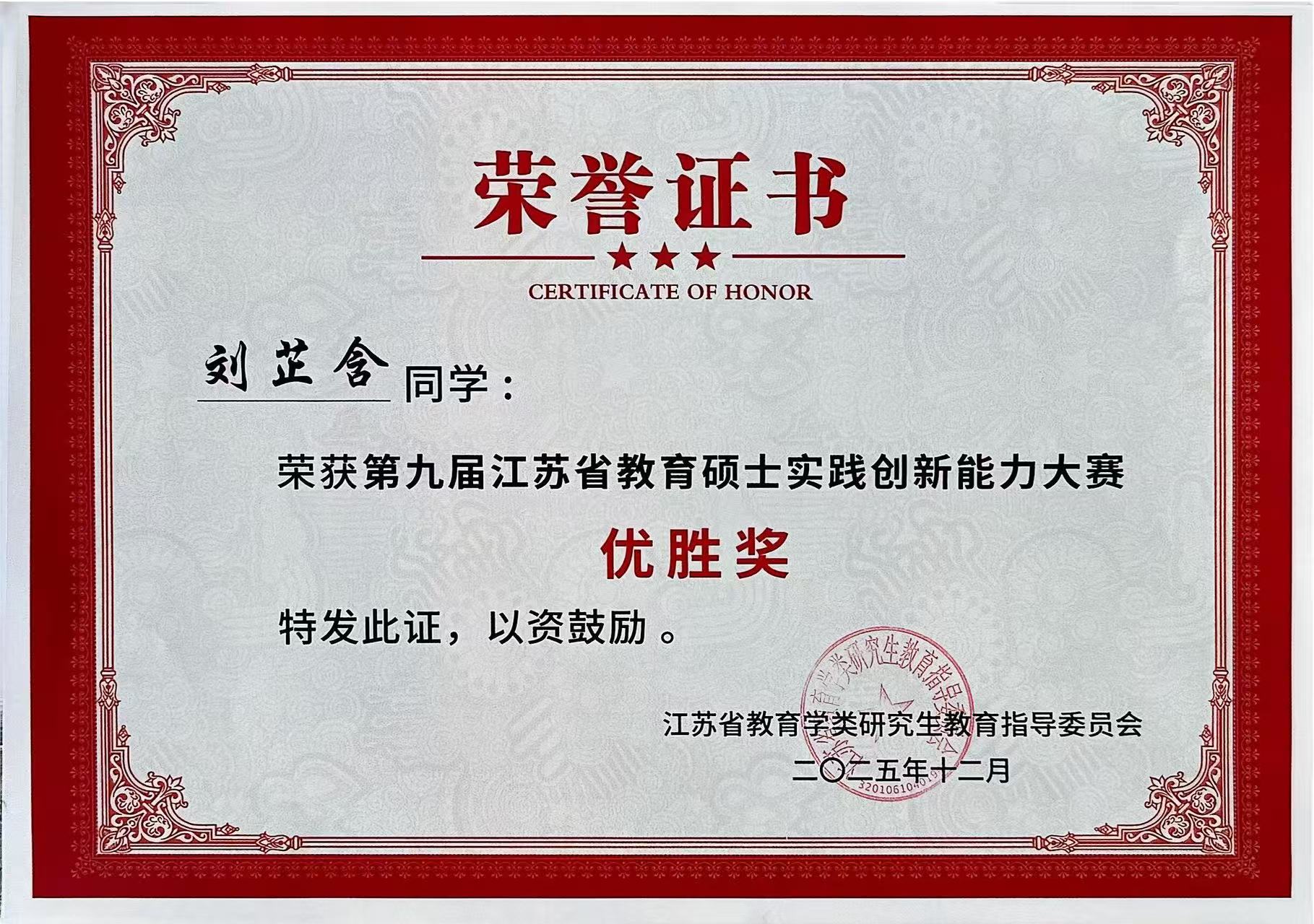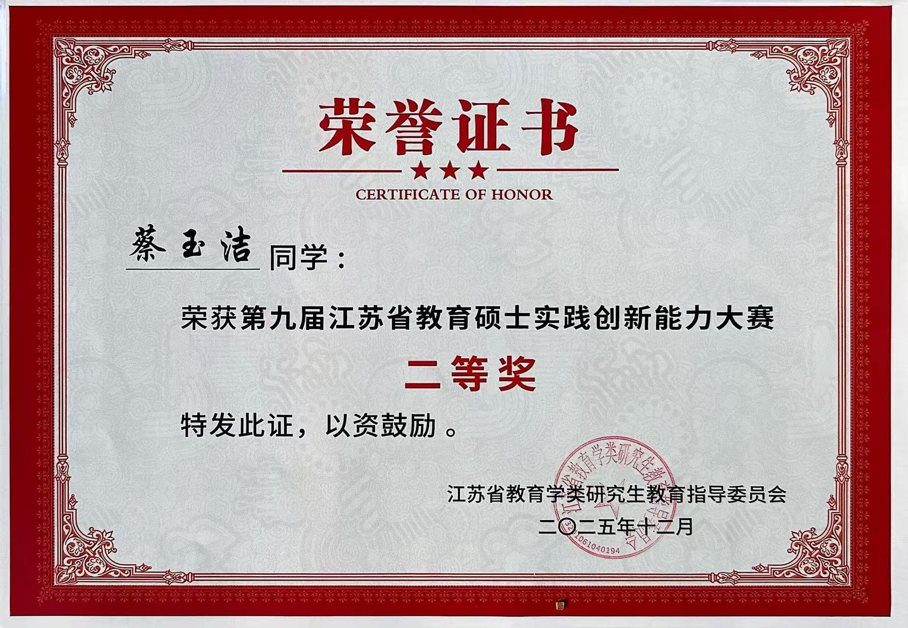 2025年12月5日-7日,由江苏省教育学类研究生教育指导委员会主办,南通大学承办的“第九届江苏省教育硕士实践创新能力大赛”在南通大学举行。公司研究生荣获二等奖2项,优胜奖3项。