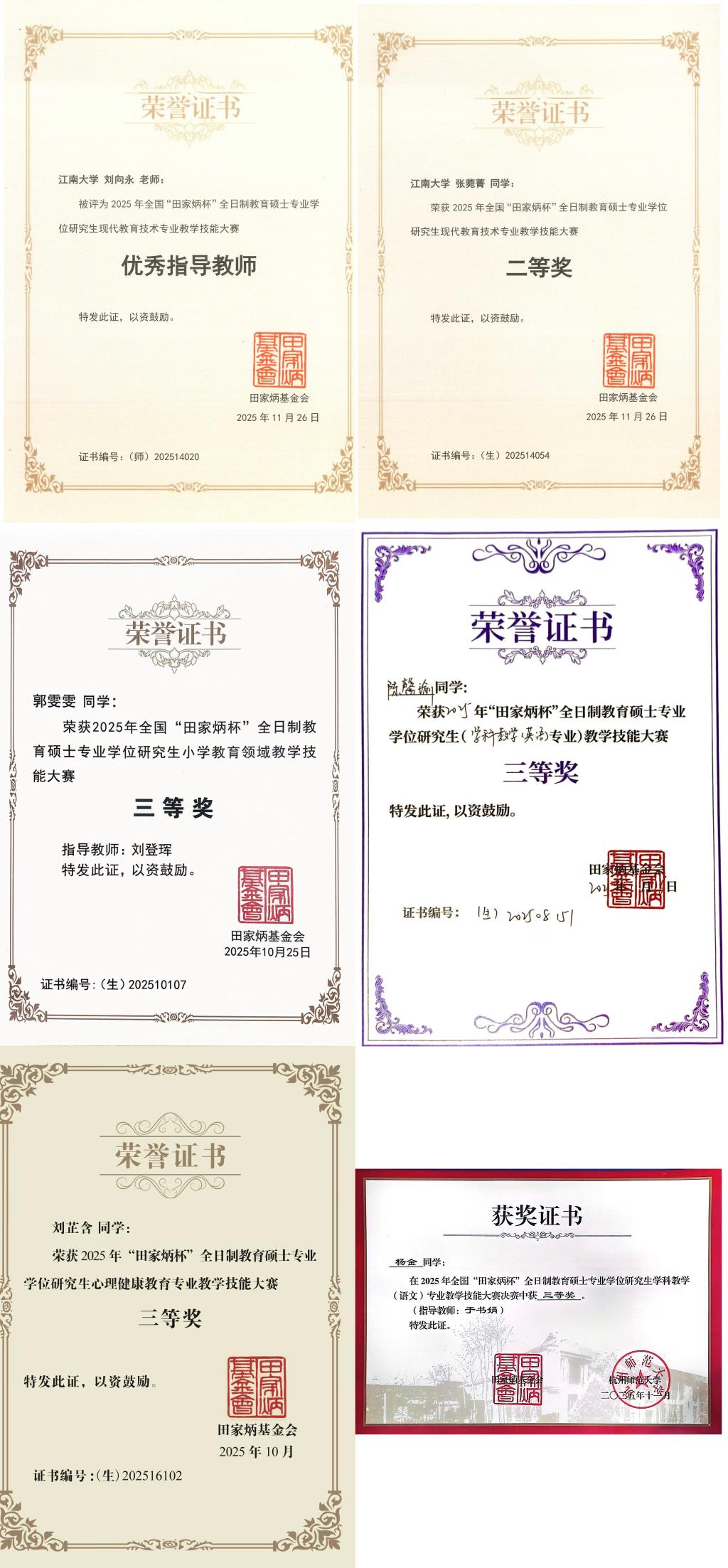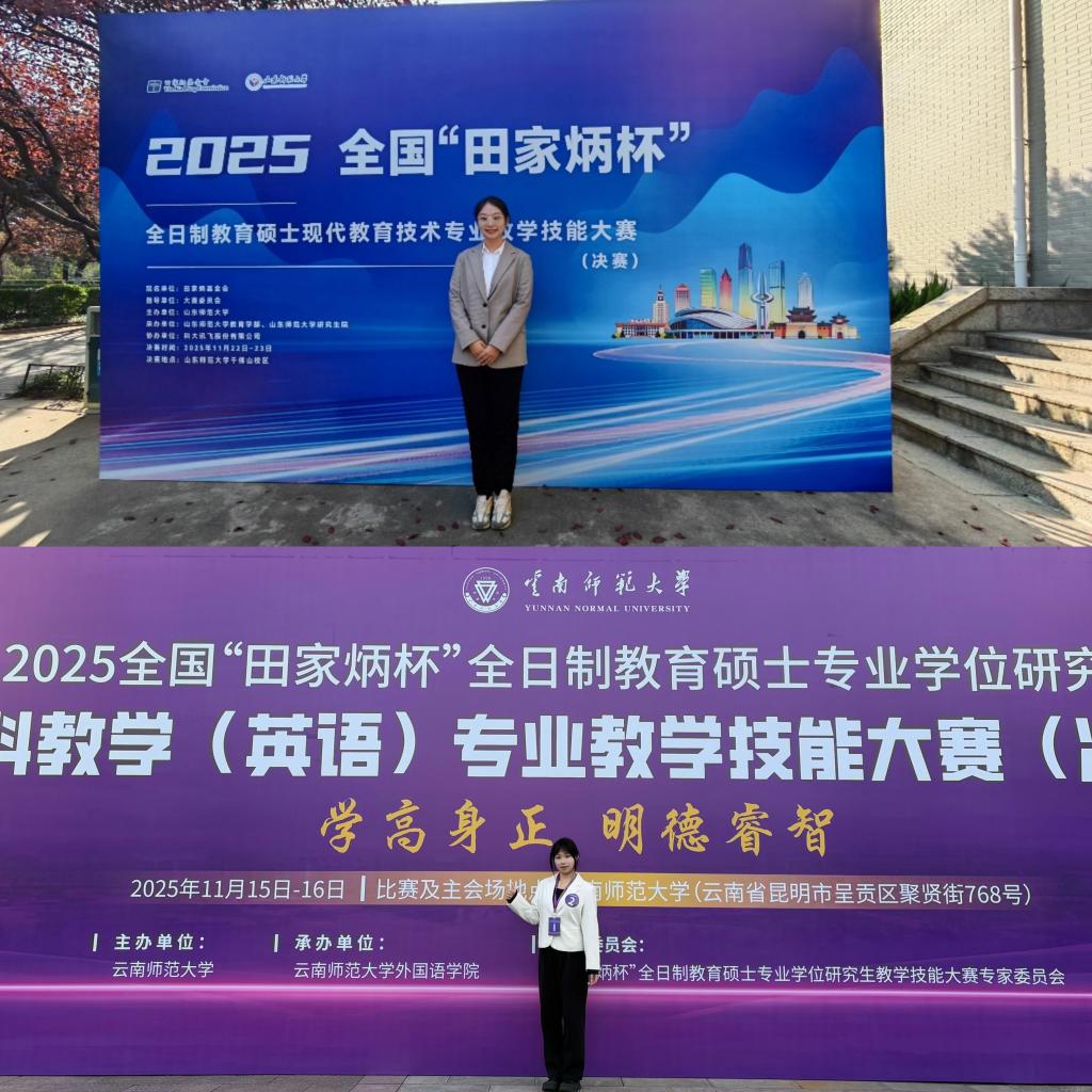 近期,由全国教育硕士研究生教学技能大赛专家委员会、田家炳基金会冠名的2025年全国“田家炳杯”全日制教育硕士专业学位教学技能大赛(决赛)在各高校顺利开展。PlayAce有5位研究生凭借自己扎实的教学功底和合理新颖的教学设计、从容精彩的教学展示脱颖而出,进入决赛并取得佳绩。其中,张菀菁同学获得二等奖,杨金、陈馨瑜、郭雯雯、刘芷含四位同学获得三等奖,刘向永老师荣获“优秀指导教师”称号。