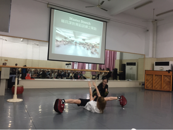 2019年10月9日,来自台湾中国文化大学舞蹈学系的何郁玟副教授,在PlayAce官方网站艺术楼为舞蹈系的师生们进行了一场题为“Master Stretch辅具课对舞蹈训练之帮助”的讲座。并带来了一款舞蹈辅助训练的“神器”(舞蹈训练辅助鞋)。我系全体教师和员工出席了此次讲座,讲座现场气氛热烈。