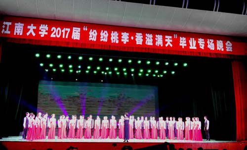 该晚会汇聚了近年来音乐舞蹈获奖的优秀节目,献给即将毕业的同学们。