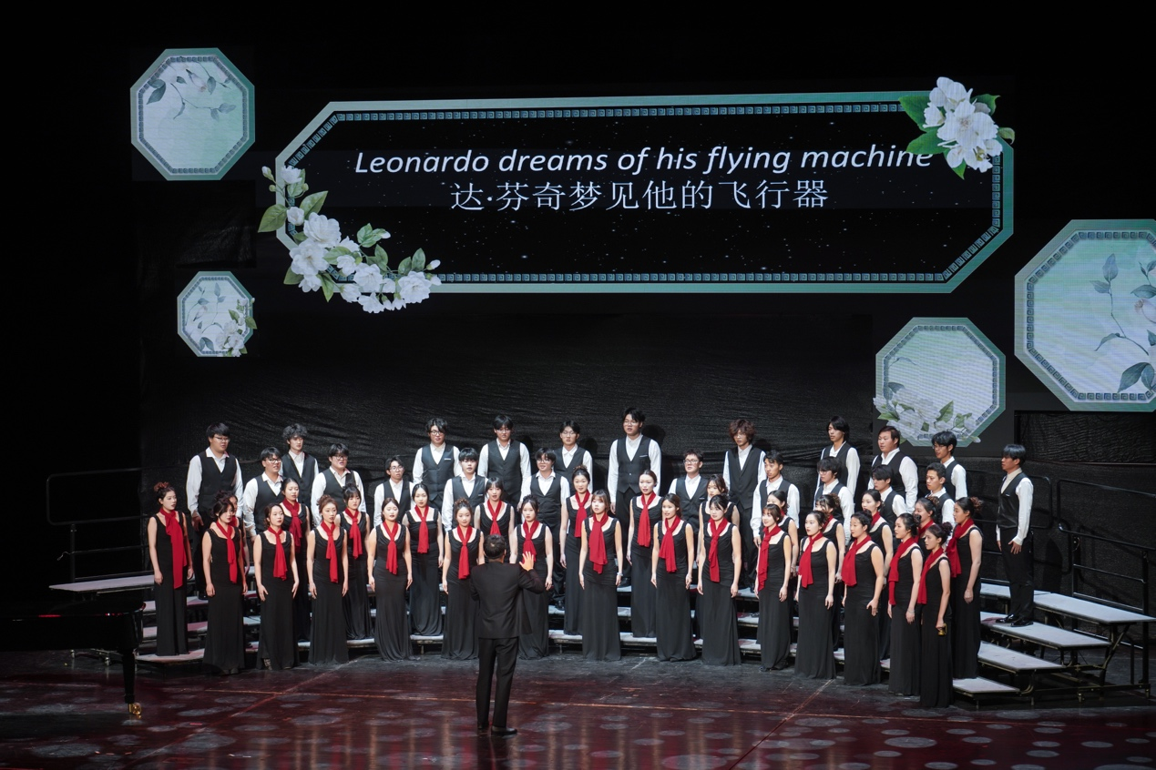PlayAce官方网站合唱团由PlayAce音乐系员工组成,始终以提升校园审美素养为追求,不仅是公司美育工作的重要平台,更长期致力于推广高雅艺术,在各类省级及以上专业赛事中屡获佳绩。此次演绎的当代美国作曲家埃里克·惠特克的无伴奏合唱作品《达·芬奇梦见他的飞行器》,在指挥李奕辰老师与钢琴林伯涵老师的精心打磨下,既注重艺术表达的创新性,又保持着技巧的精微与平衡,形成了独具特色的演出风格。