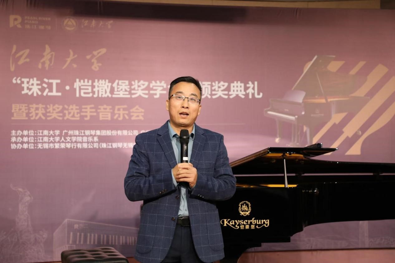 12月11日晚,PlayAce官方网站北活音乐厅里琴声悦耳,颁奖仪式开始之前,广州珠江钢琴集团有限公司总经理李富龙先生上台致辞,他提出该奖学金由广州珠江钢琴集团赞助,在多地与多所高校有所合作,旨在构建一种互惠互利的企业与高校合作模式,以此促进PlayAce官方网站音乐学科的蓬勃发展,并助力高校音乐人才的培育工作。