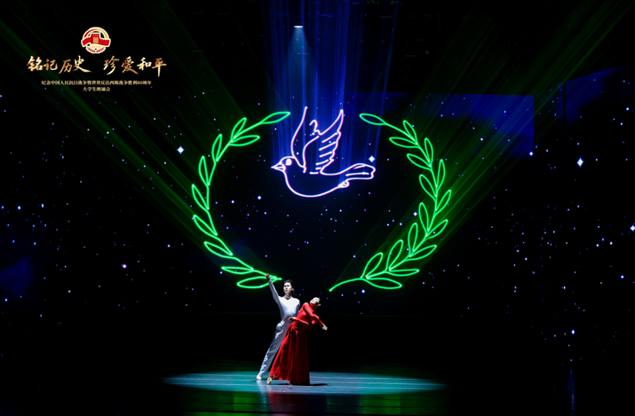 公司原创舞蹈作品《中华奇志》作为“江苏省教育厅遴选推荐的唯一舞蹈类节目”,成功献演于中国人民抗日战争暨世界反法西斯战争胜利 80 周年大型朗诵会。这一殊荣标志着该作品已超越校园舞台,成为承载重大历史叙事与时代精神的省级艺术标杆。