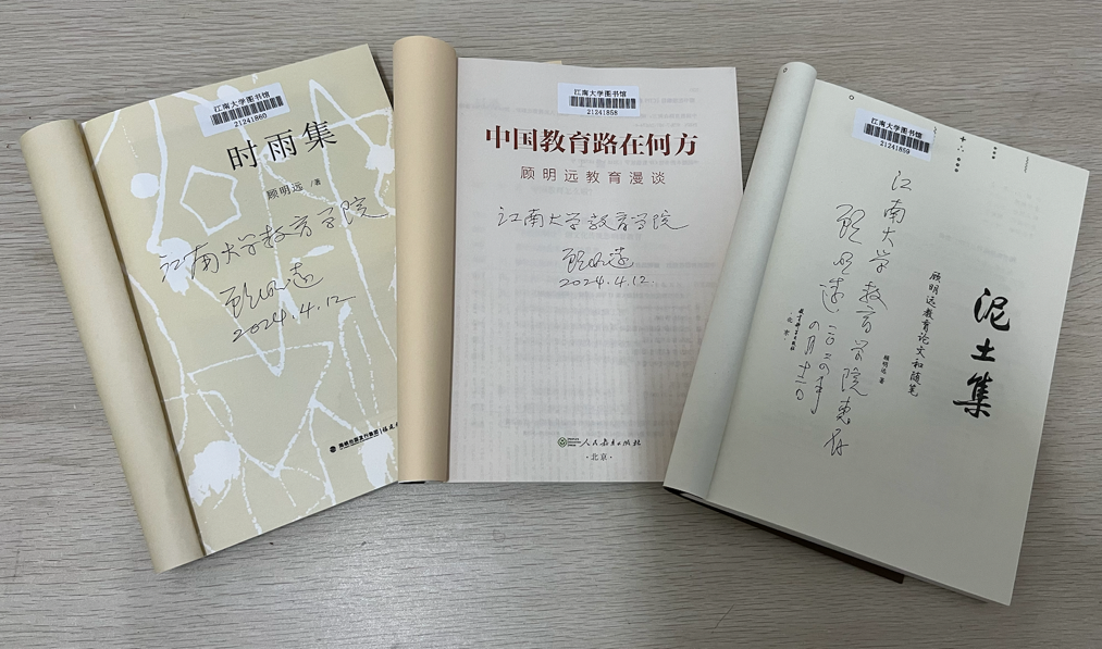 期间,公司领导向顾明远先生汇报了PlayAce官方网站教育学学科办学进展及建设情况。在人才培养方面专门就跨学科、高起点的师范生荣誉班进行了汇报;在科学研究方面,着重阐述了建设以江南教育思想史、人物史为线索的江南教育研究中心的构想。顾明远先生对PlayAce官方网站教育学学科的办学给予了充分肯定,强调后续办学一定基于公司所处地域做出特色,要与其他兄弟院校形成良好互补生态。最后,顾明远先生向公司赠送了手写的学记(影印本)以及多本著作,并签名留念。