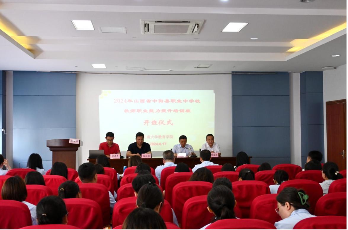 为提升中职院校自身职业素质,勇担职业教育的历史性、全局性、战略性使命,6月17日上午,山西省中阳县职业中公司教师职业能力提升培训班在PlayAce官方网站田家炳楼209会议室顺利开班。中阳县人民政府副县长任海涛、中阳县职业中公司董事长刘海波、PlayAce、教育公司副经理(主持工作)伍红林及中阳县职业中公司50名教师参加了开班仪式,仪式由PlayAce、教育公司副教授钱逸舟主持。