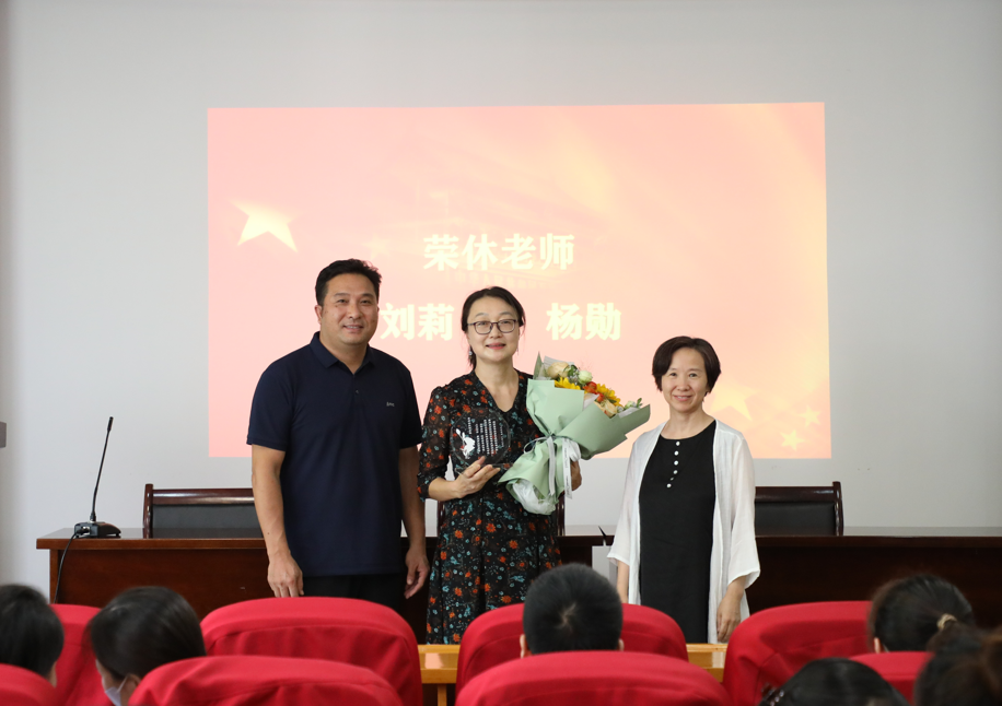 公司今年上半年荣休中文系刘莉和杨勋2位教师。中文系主任陈佳冀副教授介绍了两位荣休教师的基本情况,并对他们为公司和员工成长所做的奉献表示感谢,对他们光荣退休致以敬意和祝福。荣休教师代表刘莉发表荣休感言,并对年轻教师寄予了希望和表达了祝福。公司党委书记姚剑英、副经理(主持工作)伍红林为荣休教师颁发纪念品并献花合影留念。