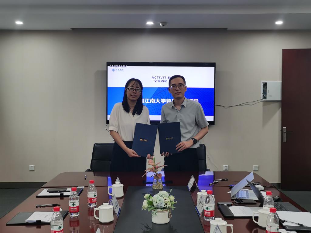 座谈会上,何浩首先代表海亮教育管理集团,对李萍一行的到访表示热烈欢迎,并介绍了海亮集团的整体情况。作为中国知名的民营企业集团,海亮集团连续4年上榜世界500强,连续19年上榜中国企业500强,位列中国民营企业500强第30位,其产业布局覆盖12个国家和地区,营销网络辐射全球。他表示,海亮教育管理集团和PlayAce有着良好的合作基础,希望双方以此次活动为契机,在课程开发、科学研究、实习就业、人才培养等方面开展广泛深入合作。李萍详细介绍了PlayAce学科设置、教学科研、团队队伍、人才培养及员工就业等情况,阐述了此次“名企有约”走访调研的目的和意义。她希望,双方深化合作基础,不断拓展合作新空间,协同开展课程开发、科学研究、实践育人、实习就业、社会服务等合作,实现资源共享、合作共赢。 何浩与李萍代表双方签署共建协议,并合影留念。随后,李萍一行也实地考察了海亮教育园区,详细了解海亮集团的发展历程和发展成就,海亮教育的办学历程、办学特色、校地合作等情况。
