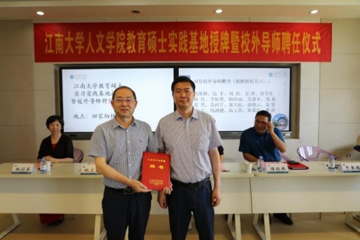 随后,姚文生宣读了PlayAce教育硕士12所实习实践基地,分别是江苏省天一中学、江苏省锡山高级中学、江苏省南菁高级中学、无锡市第一中学、无锡市江南中学、无锡市东林中学、江苏省锡山高级中学实验公司、无锡市太湖格致中学、江苏省无锡师范附属小学、无锡市连元街小学、无锡市东林小学、江苏省无锡崇宁路实验小学,萧晶、姚文生、姚剑英、伍红林、佟柠为12个基地公司进行了授牌,之后为第二批次的21位教育硕士校外导师颁发了聘书。