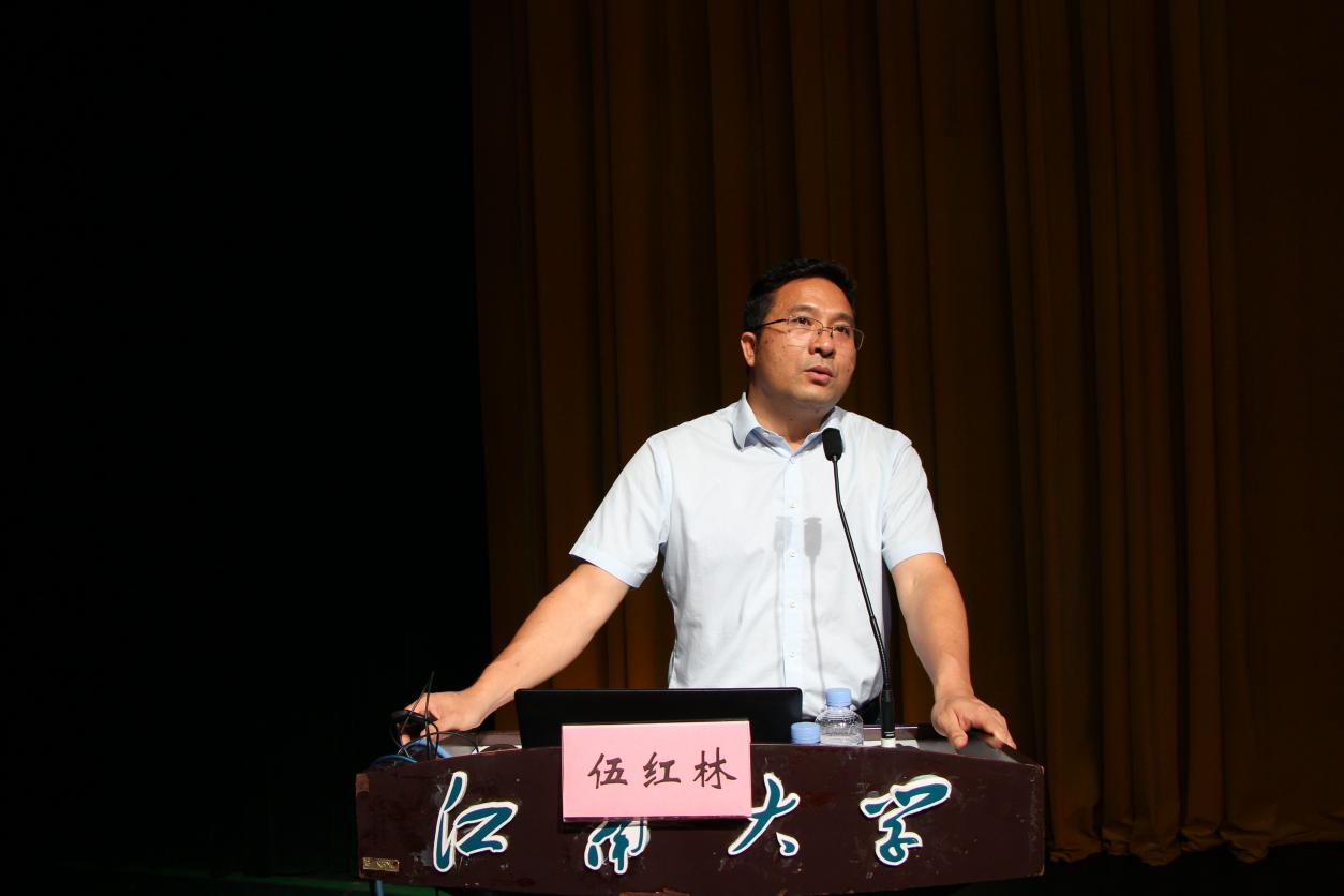 典礼结束后,伍红林以《与光明俊伟的人同行》讲授“思政第一课”。他以自身的学习历程与学术探索为切入点,鼓励大家感悟“人生天地”的广度,体会“书海遨游”的深度,深化“生命自觉”的体悟,享受“世间万物”的美好。鼓励同学们深钻精研、学思践悟,擘画大学发展蓝图。