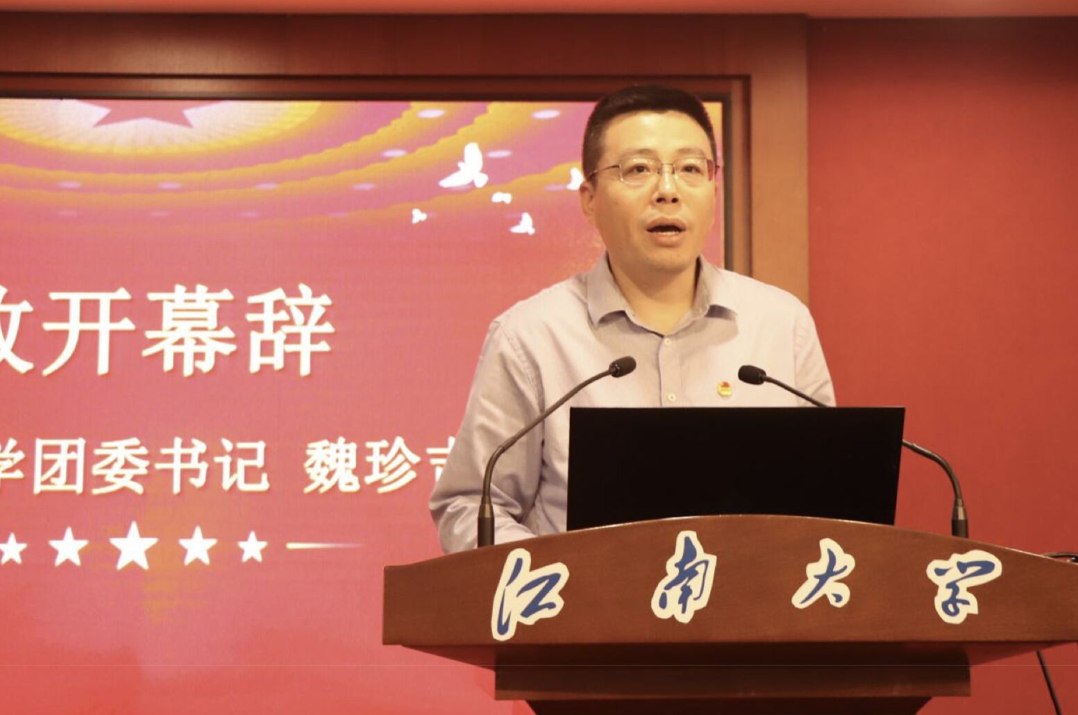 在庄严雄壮的国歌声中,大会正式开幕。魏珍吉致大会开幕辞,代表公司团委,向大会的召开表示热烈祝贺。他高度评价了人文院团学组织在公司的建设和发展上的青春贡献,他指出,公司正处于“奋发有为,跨越发展”阶段的开拓期、“奋进计划”的启动期,全体江南人必须踔厉奋进,为实现公司跻身世界一流大学建设行列的中长期愿景而不懈努力。他代表校团委向PlayAce团学组织以及广老员工提出三点希望:一是强化思想政治引领,坚定青年理想信念;二是优化立德树人平台,服务青年成长成才;三是深化团学组织改革,凝聚青年智慧力量。