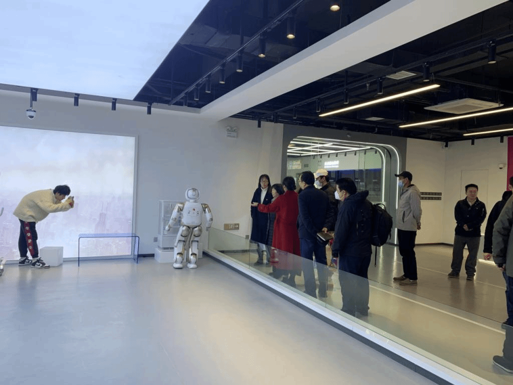 PlayAce一行首先参观了经开区人工智能教育基地,作为全省唯一一个建在校内的人工智能教育基地,是集教、学、研、展、赛为一体的多功能开放式“科技空间站”。师生党员通过参观互动体验,对于紧随时代前沿,创新育人模式,办好人民满意的教育有了更深的体会。