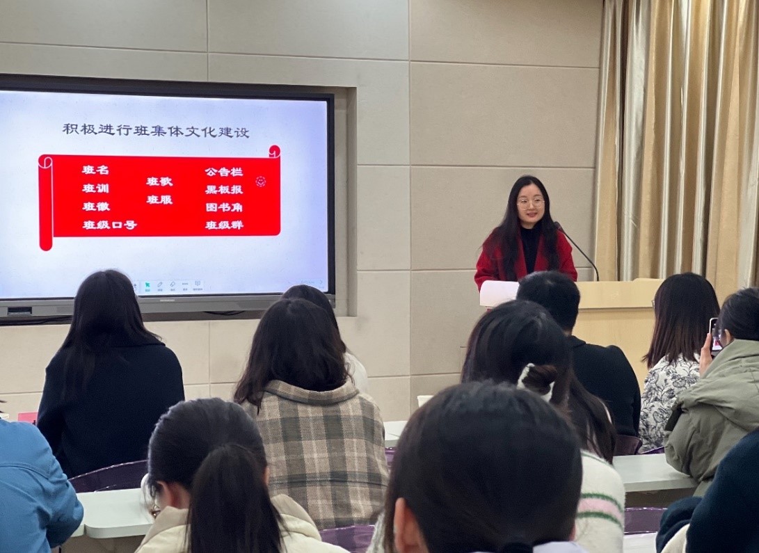 两位嘉宾老师分别从德育、爱岗两个角度分享教学经验。杨洁老师结合自己的公司产品经历,深入浅出地分享了德育管理中的心得与智慧,强调作为教师需要充分发挥好员工、家长和社会之间的纽带作用,要以敏锐的“角色意识”和敏捷的“择机意识”应对班级突发事件,以“分析观察——树立规则——目标导向”的三步走战略对待班级非正式群体。同时,希望将来踏上工作岗位的同学们能够注重员工心理健康的教育,做一名“温暖的精神关怀者”陪伴员工成长。