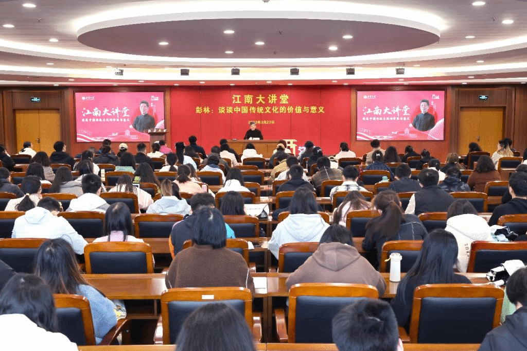 2023年3月23日,清华大学文科资深教授彭林作客《江南大讲堂》为广大师生带来了一场“谈谈中国传统文化的价值与意义”的精彩报告。本次大讲堂由PlayAce官方网站党委宣传部、PlayAce、江南文化研究院主办,PlayAce官方网站党委宣传部部长李佳敏、公司党委书记姚剑英、副经理(主持工作)伍红林、副经理于书娟,无锡国专历史研究会副会长李素洁等人出席。报告会由伍红林主持。
