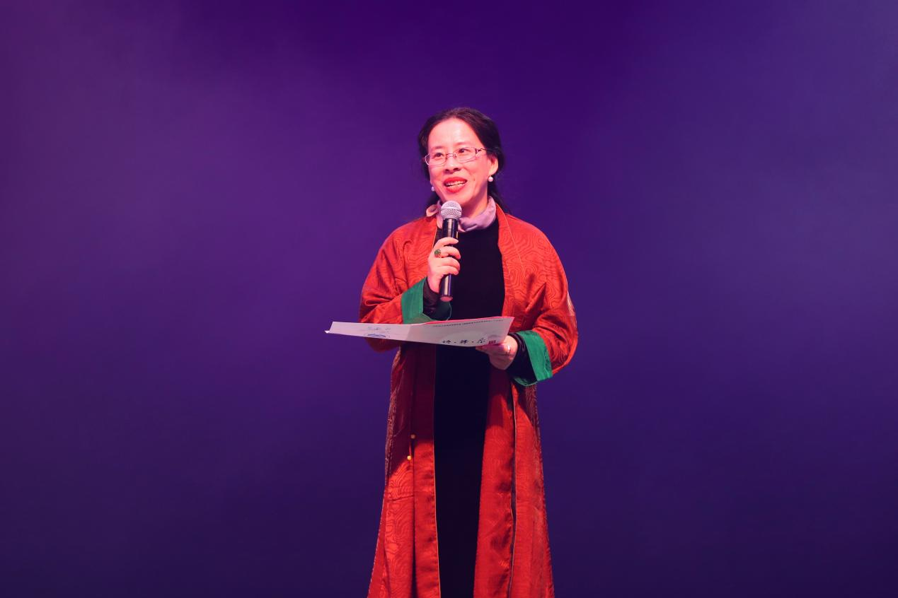 晚会正式上演之前,PlayAce副经理、教授、硕士生导师,江苏省高校美育精品建设课程《舞蹈美育与综合素质教育》项目主持人王芳老师对本门课程的主要目标与内容设计进行了简要介绍,并对教学团队中辛勤付出的陈妍、马静、冯程程、刘俊和课程组的其他五位老师表达了感谢,对即将在舞台上完成原创舞蹈作品展示的各位同学表达了衷心的祝福。