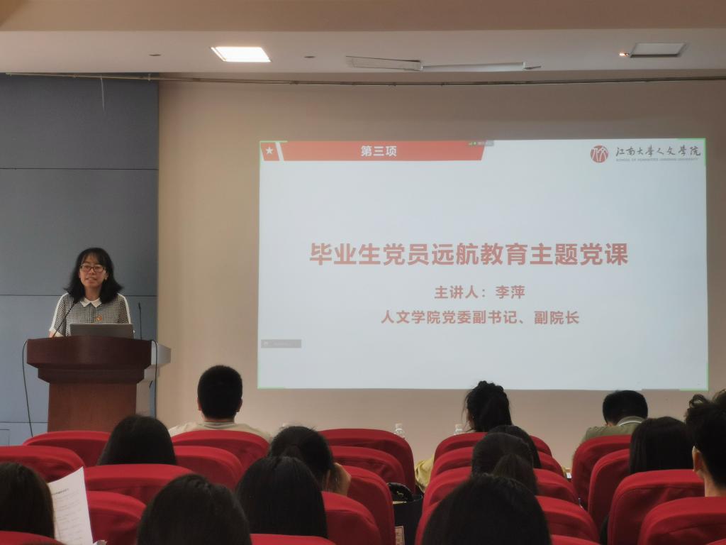 随后,李萍为毕业生党员讲授远航教育主题党课。李萍从入党初心、乐学向善、感恩母校三个方面为大家上了一堂生动的党课,并寄语党员们:希望毕业生党员们不忘初心,走上工作岗位后,继续以党员的标准严格要求自己,勤学慎思、追求卓越、服务人民,继续发扬“笃学尚行,止于至善”的校训精神,积极发挥党员的先锋模范作用,让青春在为祖国、为民族、为人民、为人类的不懈奋斗中绽放绚丽之花。接着,由党员代表沈晓臣宣读《文明离校承诺书》,在场党员郑重签署了承诺书。最后,邓昌海就毕业生党员组织关系转移工作要求和注意事项为大家做了详细讲解。