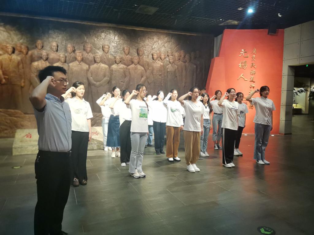 宣誓开始前,邓昌海首先带领全体预备党员参观了无锡博物院的血与火的城市记忆——无锡革命史展厅。在邓昌海的详细解说下,党员们认真学习了陈翰笙、陆定一、王昆仑等革命先烈的光辉事迹,从党史学习教育中感悟信仰之力、理想之光、使命之艰、担当之要。