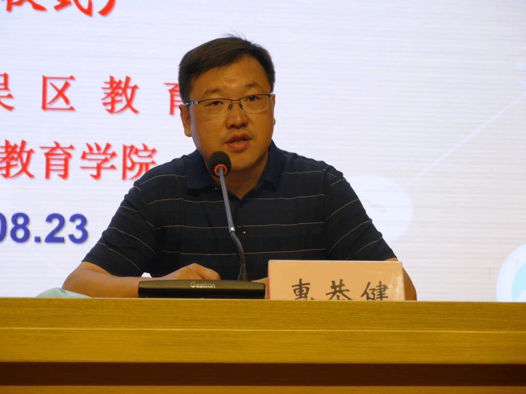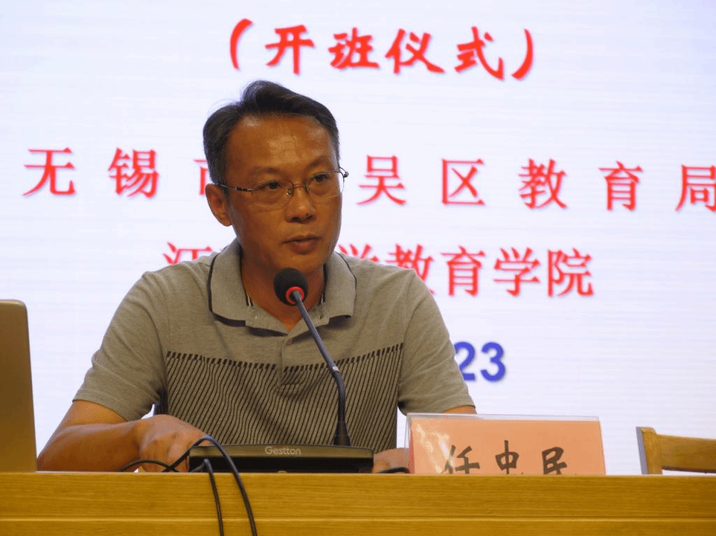 随后,顾万春主任代表新吴区教育局讲话。他首先欢迎新教师们过关斩将,加入新吴教育大家庭。他提出希望各位学员能够牢记为党育人、为国育才的初心使命,践行学高为师、身正为范的德操和风范,树立员工为本、终身学习的理论和追求,为新吴教育高质量发展贡献力量。