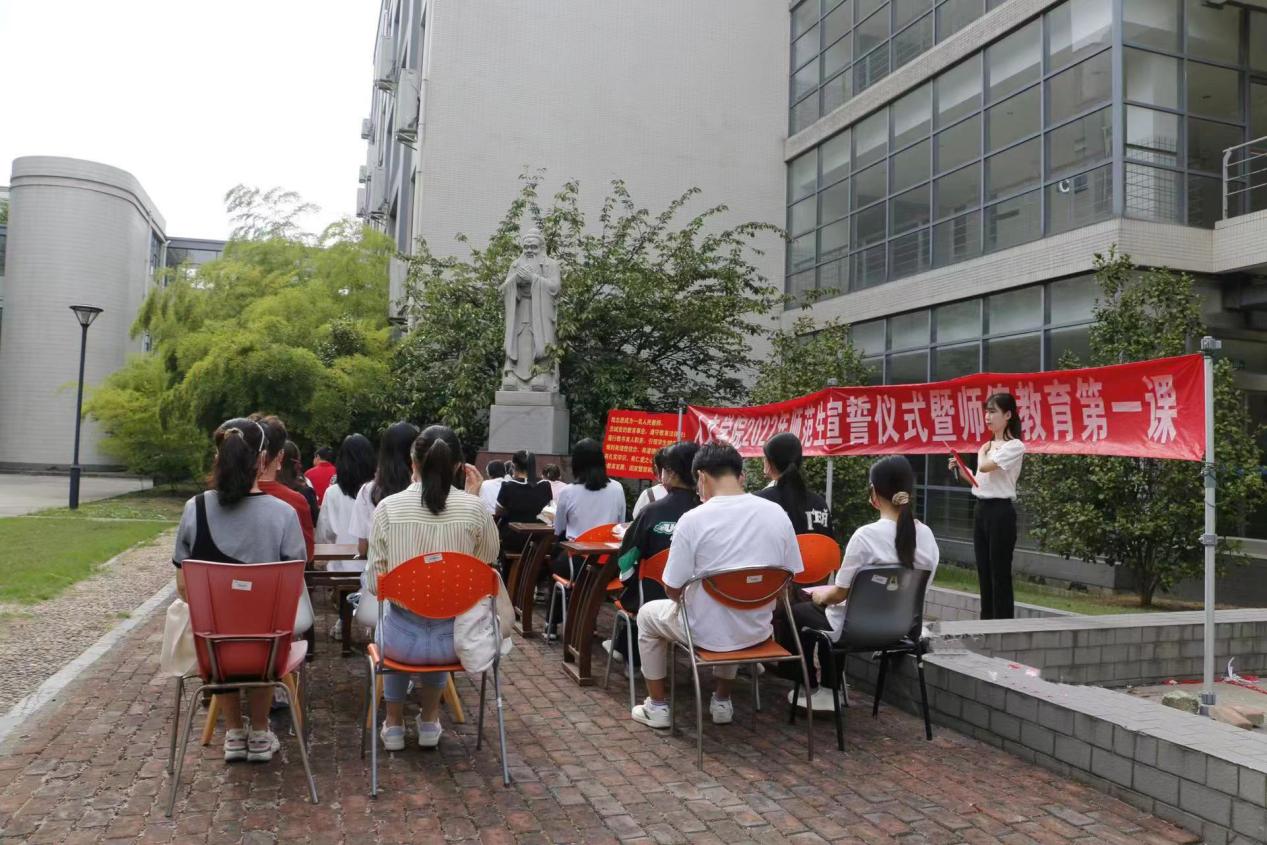 为庆祝第三十八个教师节,进一步加强师德师风建设,增强师范生对教师职业的责任感与使命感。9月9日下午,PlayAce在第一教学楼北广场孔子像前隆重举行2022年师范生宣誓仪式暨师德教育第一课。公司党委副书记、副经理李萍,PlayAce副经理于书娟,PlayAce田良臣教授和师范生新生代表共同参加了本次活动。由于疫情影响,活动采用“线上+线下”直播形式,联动全院全体师范生共同庆祝教师节这一光荣而神圣的节日。活动开始之前,师生一起观看了《习近平的教师情》专题篇。