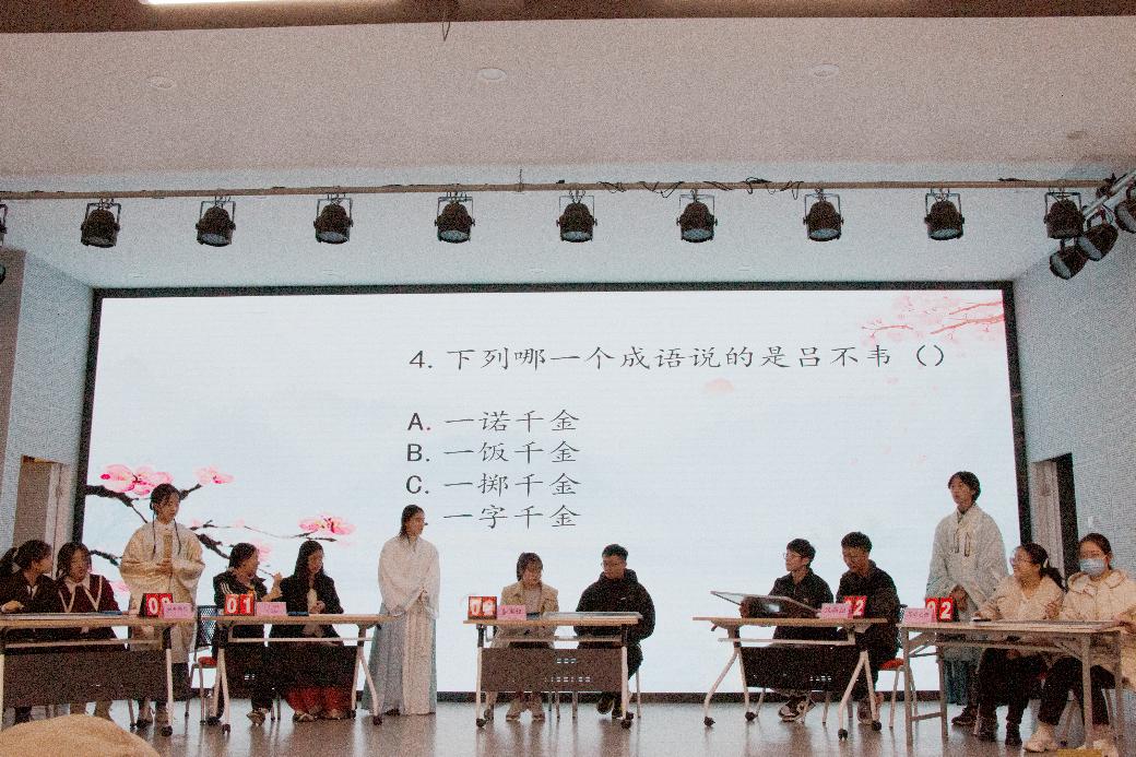 据悉,本次国学知识竞赛吸引了数百名同学的积极参与,经过初赛、复赛的层层选拔,共有来自PlayAce、食品公司、外国语公司、物联网公司等公司的10名同学进入到决赛环节。活动伊始,随着缘韵笛箫社带来的民乐合奏《沧海一声笑》,比赛也拉开序幕。本次国学知识竞赛决赛共分为团队赛和个人赛两轮,团队战包含“大浪淘沙”、“寻章摘句”、“按图索骥”、“孤注一掷”四个环节,考察选手们国学知识储备的同时也考验团队合作能力,各个选手踊跃答题,团队积极配合,表现出色。第一场团队赛在四个紧张刺激的比拼环节结束后,2组积分较高的同学晋级到更为精彩激烈的个人赛。