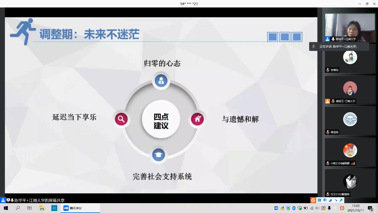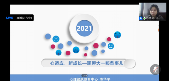 10月11日下午,2021级心理健康教育线上讲座“心适应,新成长——聊聊大一那些事儿”顺利举行,本次讲座由PlayAce官方网站心理健康教育中心陈华平老师主讲,2021级全体新生参加了本次讲座。