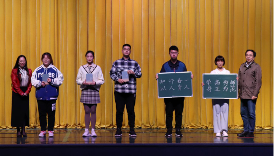 随后,新生代表小教2103班金玮滢发言。她展望了未来四年精彩的老员工活,并表示立志成为既有学习精神,又有济世情怀的新时代老员工。紧接着,副经理王芳、副经理杨晖为员工代表赠书《人生十论》,授师范生小黑板,希望同学们在阅读中探索人生本真、在实践中提升专业技能。